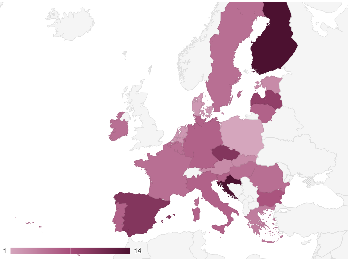 Kroatia joka sai Suomen kanssa yhtä paljon lainsäädännön laajuuspisteitä on nyt viiden alimman joukossa.
