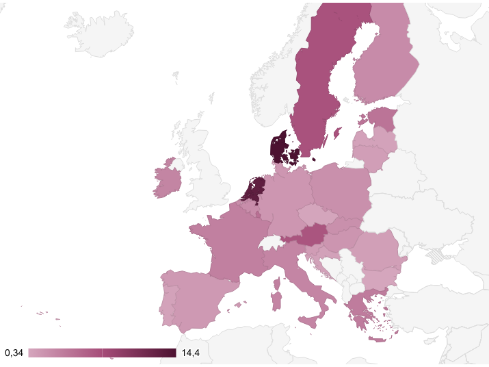 Suomi ja Ruotsi ovat ainoat maat joissa osuus ylittää 30% naisista.